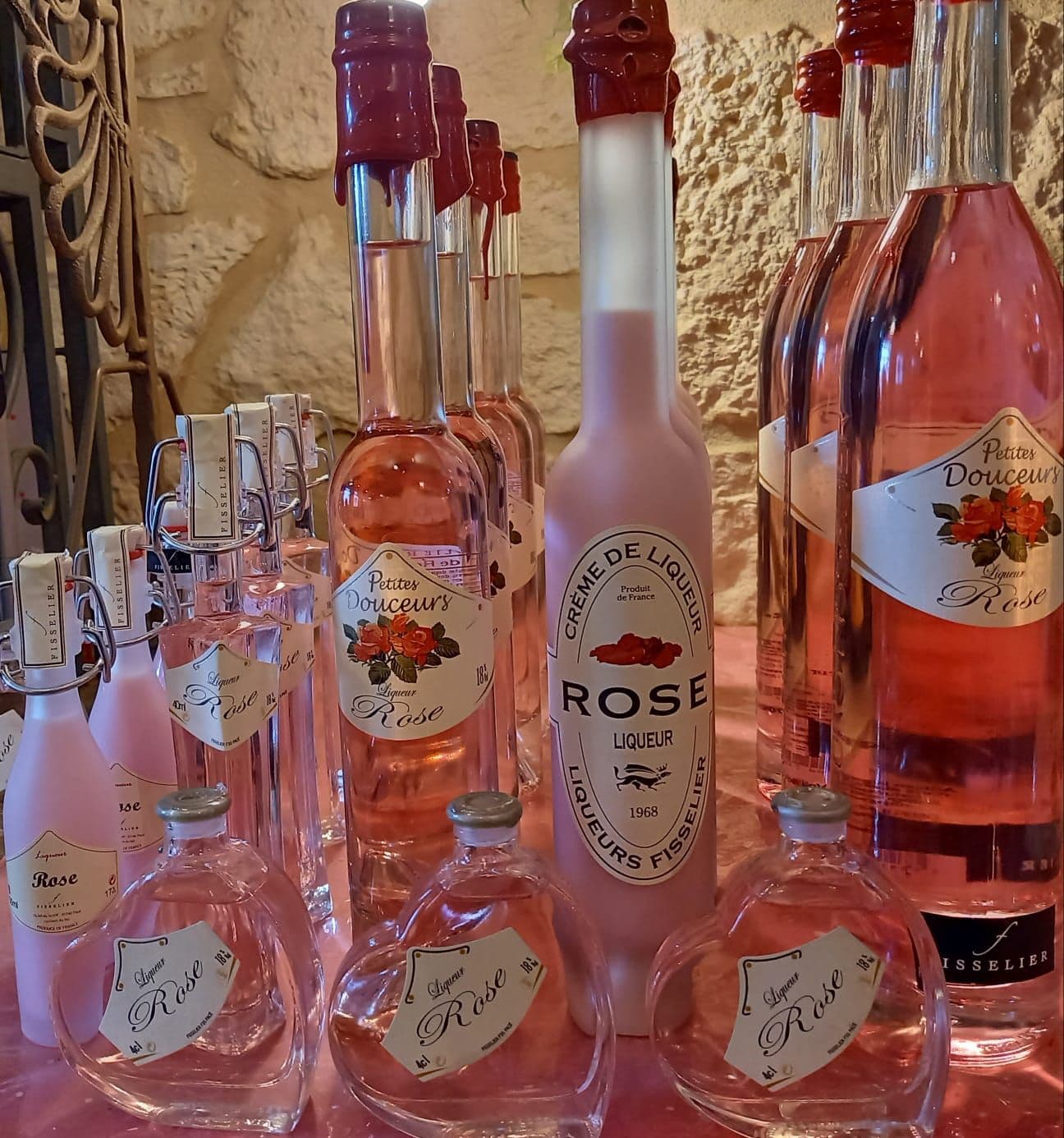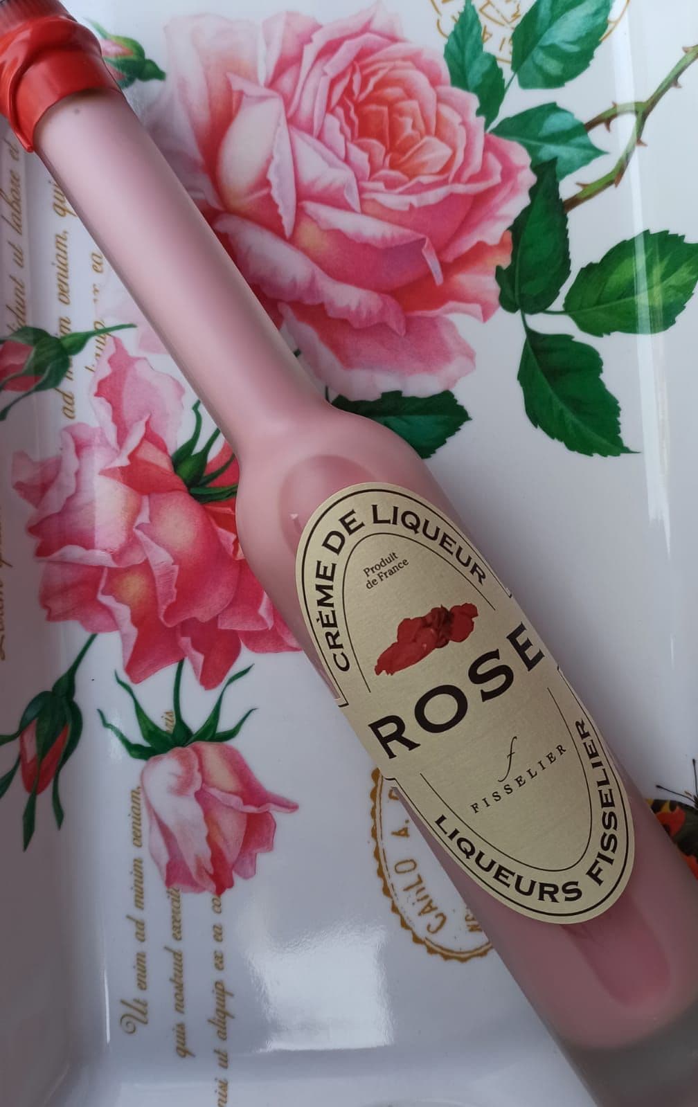 Composition : Eau, alcool, crème, sucre, protéines de lait, Arôme naturel de rose, colorant E122.